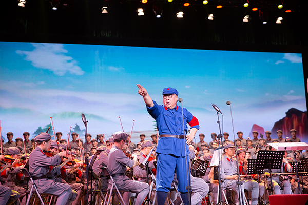 《四渡赤水出奇兵》、《飛躍大渡河》、《過雪山草地》、《到吳起鎮(zhèn)》等樂曲在藝術(shù)家的傾情演繹下,時(shí)而豪邁大氣,時(shí)而激昂歡快,渾厚的交響樂大氣磅礴、自然流暢,讓觀眾在聲樂與器樂的交織融合中深入回望長征途中艱難險(xiǎn)阻,感懷紅色印記。