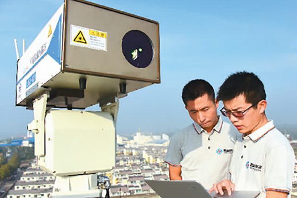 安徽省銅陵環(huán)保監(jiān)測(cè)人員在濱江花園激光雷達(dá)大氣監(jiān)測(cè)站監(jiān)測(cè)當(dāng)天的大氣環(huán)境。周峰攝(人民視覺)