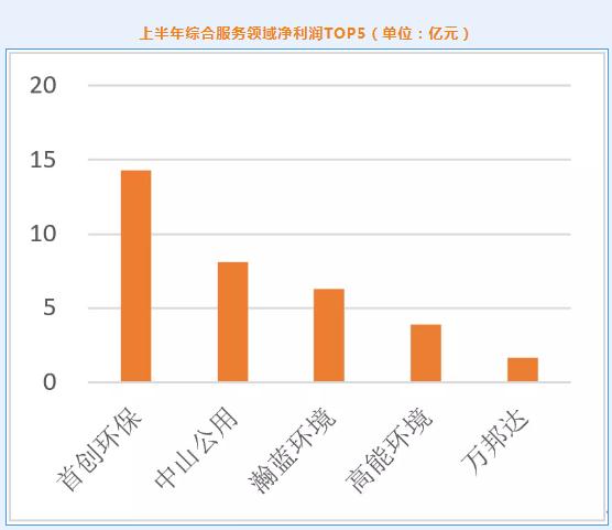 綜合服務(wù)領(lǐng)域,營(yíng)業(yè)收入同比增長(zhǎng)28.94%,環(huán)保營(yíng)收同比增長(zhǎng)29.6%,凈利潤(rùn)下降113%,個(gè)別企業(yè)(如啟迪環(huán)境、東方園林)虧損額度較大。