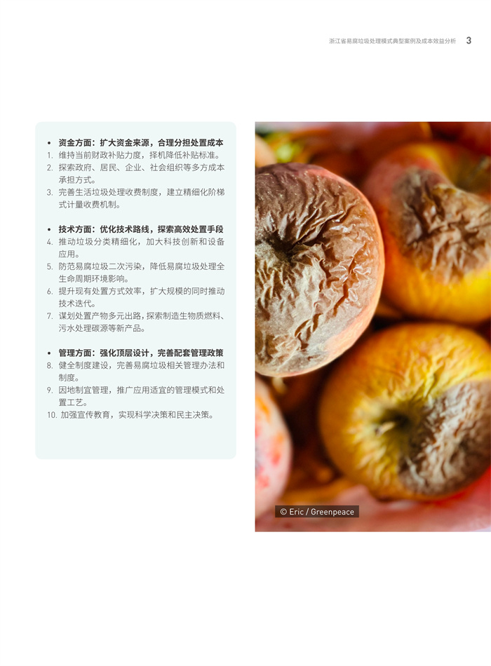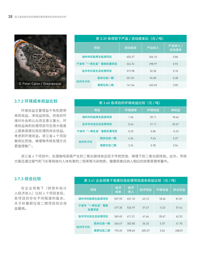 2022年3月24日,國際環(huán)保組織綠色和平、中華環(huán)保聯(lián)合會、浙江省經(jīng)濟信息中心和浙江工業(yè)大學聯(lián)合發(fā)布研究報告《浙江省易腐垃圾處理典型案例及成本效益分析》,在總結(jié)浙江省易腐垃圾處理典型經(jīng)驗基礎(chǔ)上,使用成本效益分析方法對典型案例進行了經(jīng)濟、環(huán)境成本效益評估。報告指出,項目規(guī)模越大、產(chǎn)業(yè)鏈越長、副產(chǎn)品越多,實現(xiàn)“多級精煉”,經(jīng)濟效益和環(huán)境效益越好。同時,與填埋、焚燒等傳統(tǒng)垃圾處理方式相比,以厭氧發(fā)酵、好氧堆肥和飼料化處理為主的易腐垃圾處理方式具有顯著的環(huán)境效益。
