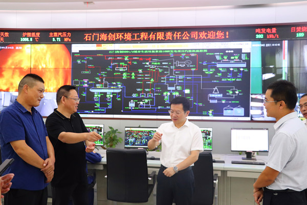 在一樓展廳,公司總經(jīng)理助理龔敏向吳興國書記詳細(xì)介紹了海螺創(chuàng)業(yè)的發(fā)展歷程、產(chǎn)業(yè)布局以及石門海創(chuàng)項(xiàng)目公司的基本情況;在三樓中控室,吳興國書記聽取了公司生產(chǎn)經(jīng)營、環(huán)保管控的情況介紹。